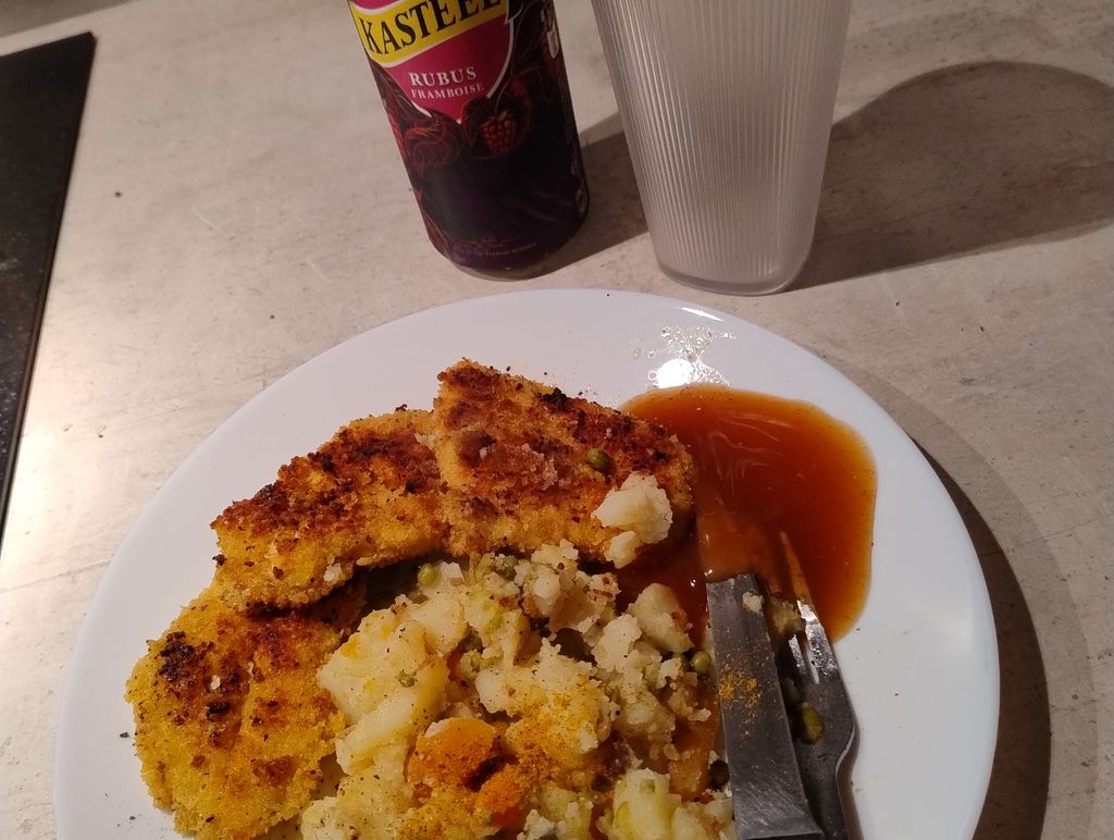 KFC maison et ses végétablent. Sauce Heinz à la fois douce, et aigre.