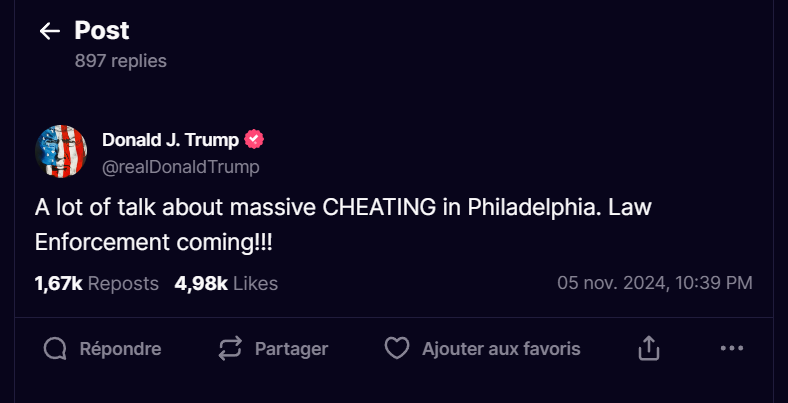 Spoil : Trump est entrain de perdre mais prépare à la révolte en pennsylvanie