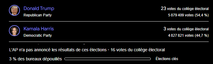 on attend la Virginie, si c'est Trump qui l'emporte c'est quasiment foutu pour Gramala