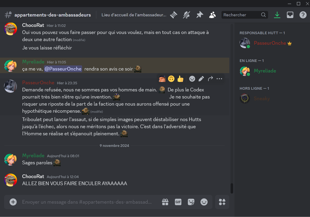 Cependant il était ambassadeur de votre faction sur notre discord, nous aimerions donc en changer pour rester entre non-coomers