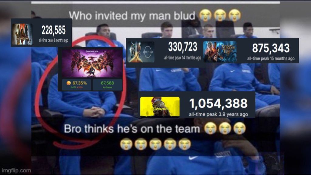 Après, un pic à 70K c'est pas non plus un raz de marée. BG3 c'est 875K et Kingdom Come (beaucoup plus niche) 95K.