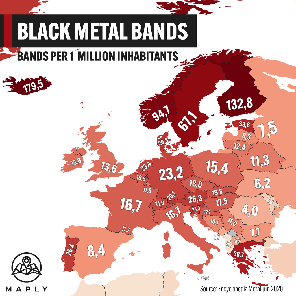 Sur la carte d'europe, les clusters de groupes de black metal correspondent aux clusters de blonds aux yeux bleus. Rien à ajouter
