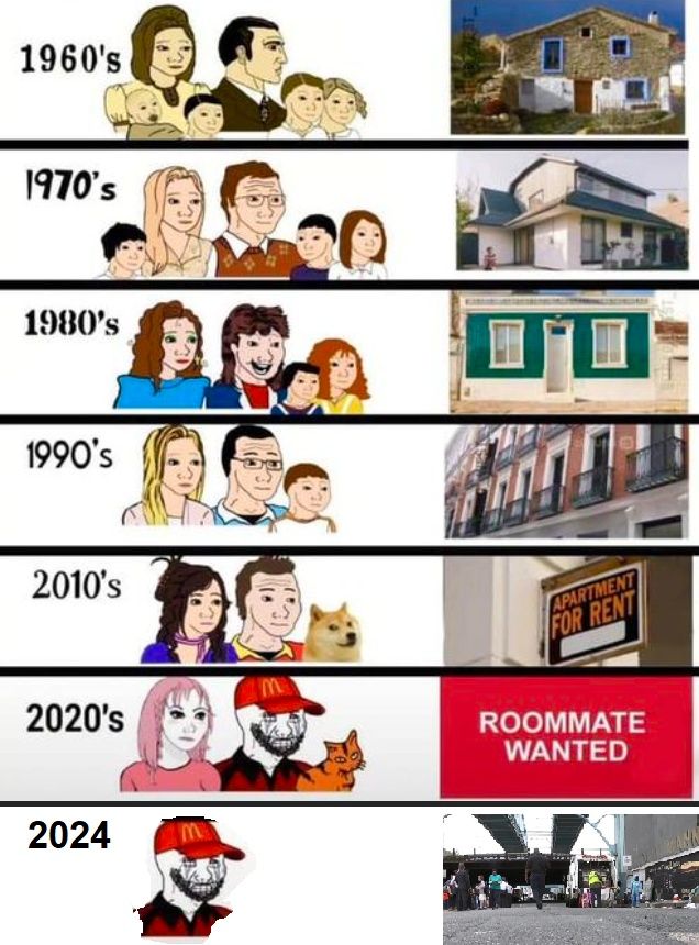 la derniere ça aurait du être le wojak solo et en arriere plan un chad riche avec plusieurs femmes ou bien un negre au qi negatif qui deal avec la femme blanche