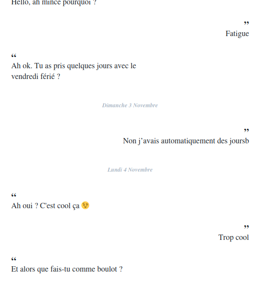 Non pas du tout et la conv sur 4 jours pour 5 messages échangés