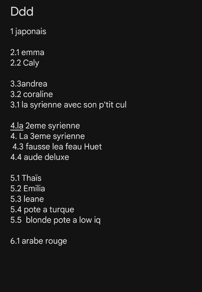 Jai fait une liste des meufs qui mon fait bander et excitée pour le DDD