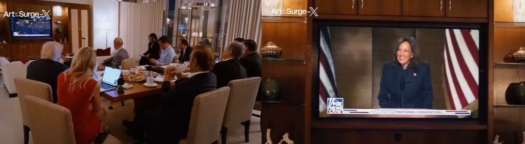 Trump watching Kamala speech with Matt Gaetz, Susie Wiles and Oliver Stone