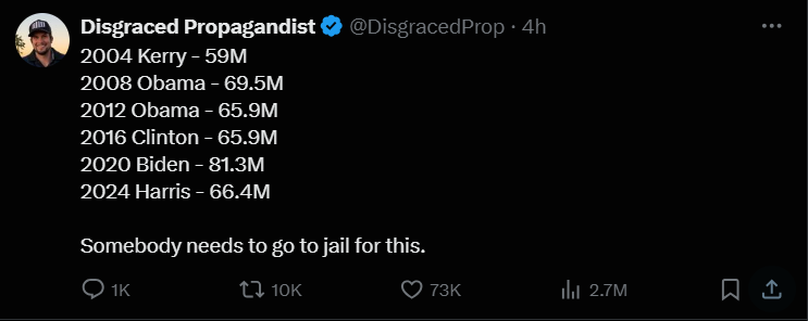 Mais pour Harris il manque toujours 9 millions de voix.