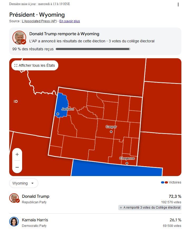 C'est l'état ou trump a fait le score le plus bas. Meme en Californie, Terre gauchiste , il fait 40 %