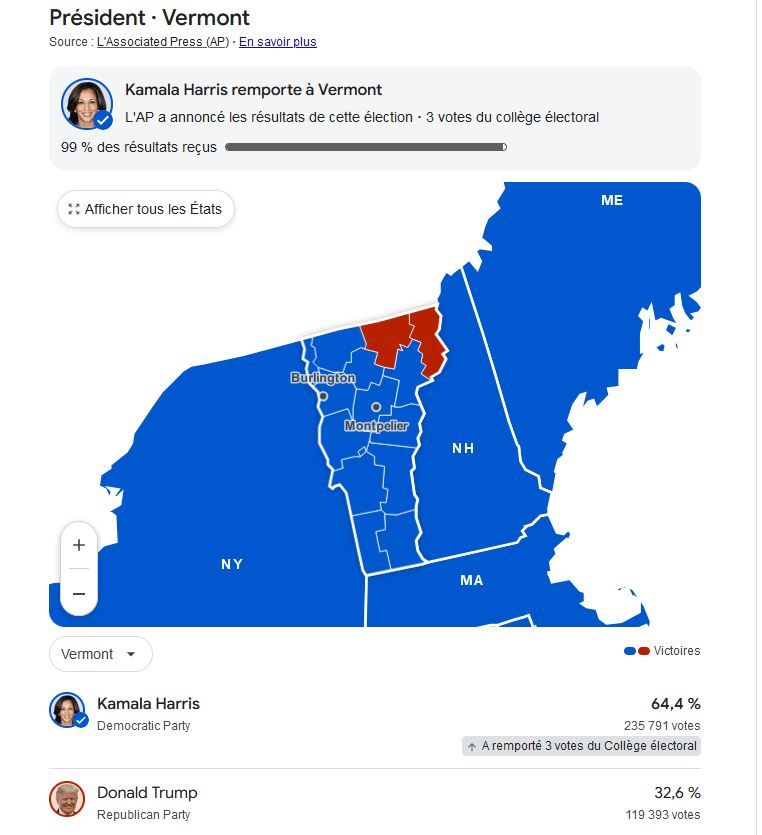 Pas cool pour les gens du vermont. Trump au Canada fait meme pas 20 %