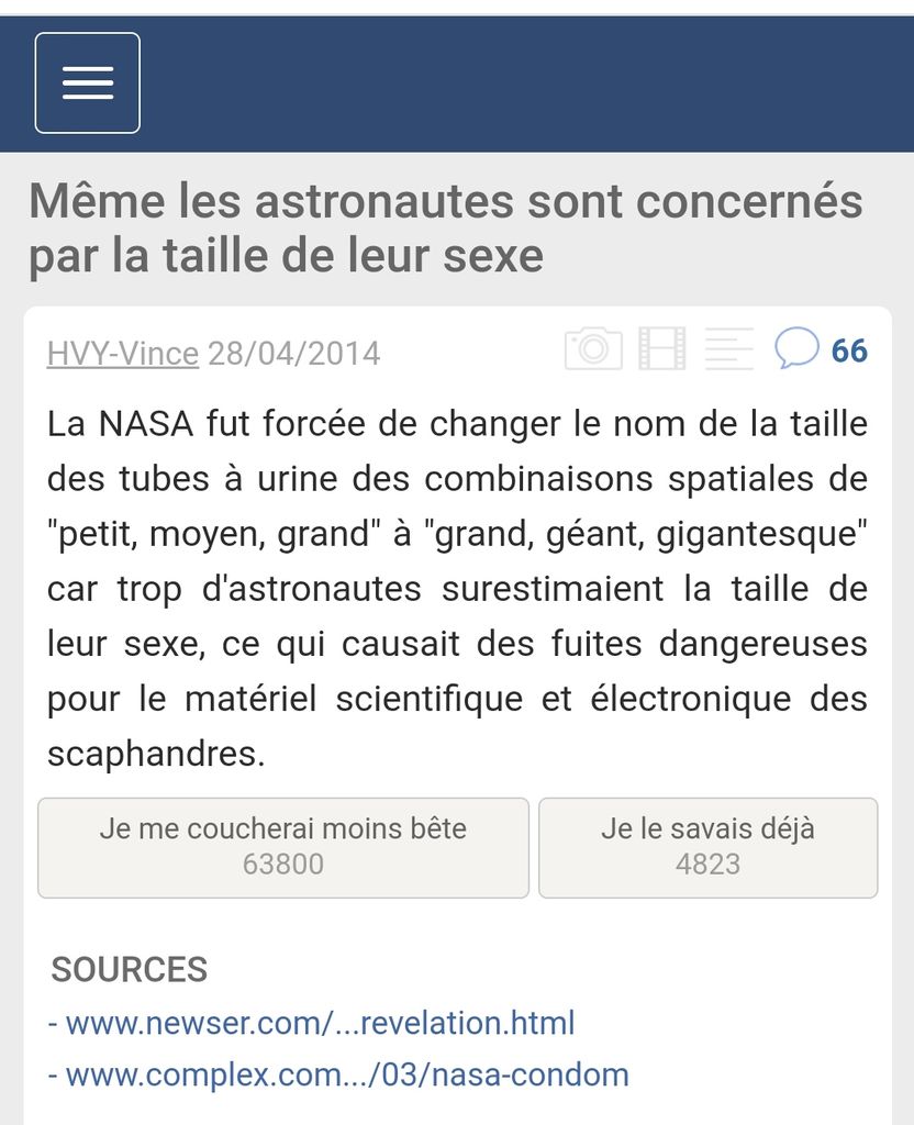 On a changé la taille au niveau du pénis pour la tenue des cosmonautes parce que personne ne disait S a ce niveau