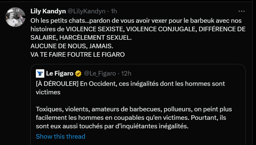 Elles sont complètement ravagées par l'idéologie féministe, inutile d'espérer en tirer un semblant de bon sens.
