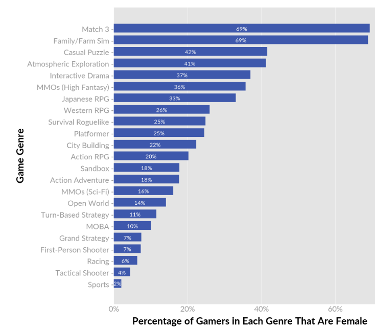 https://www.gamedeveloper[...]of-female-gamers-by-genre )