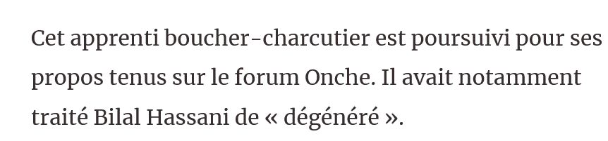 Cet apprenti boucher-charcutier est poursuivi pour ses propos tenus sur le forum Onche. Il avait notamment traité Bilal Hassani de « dégénéré ».