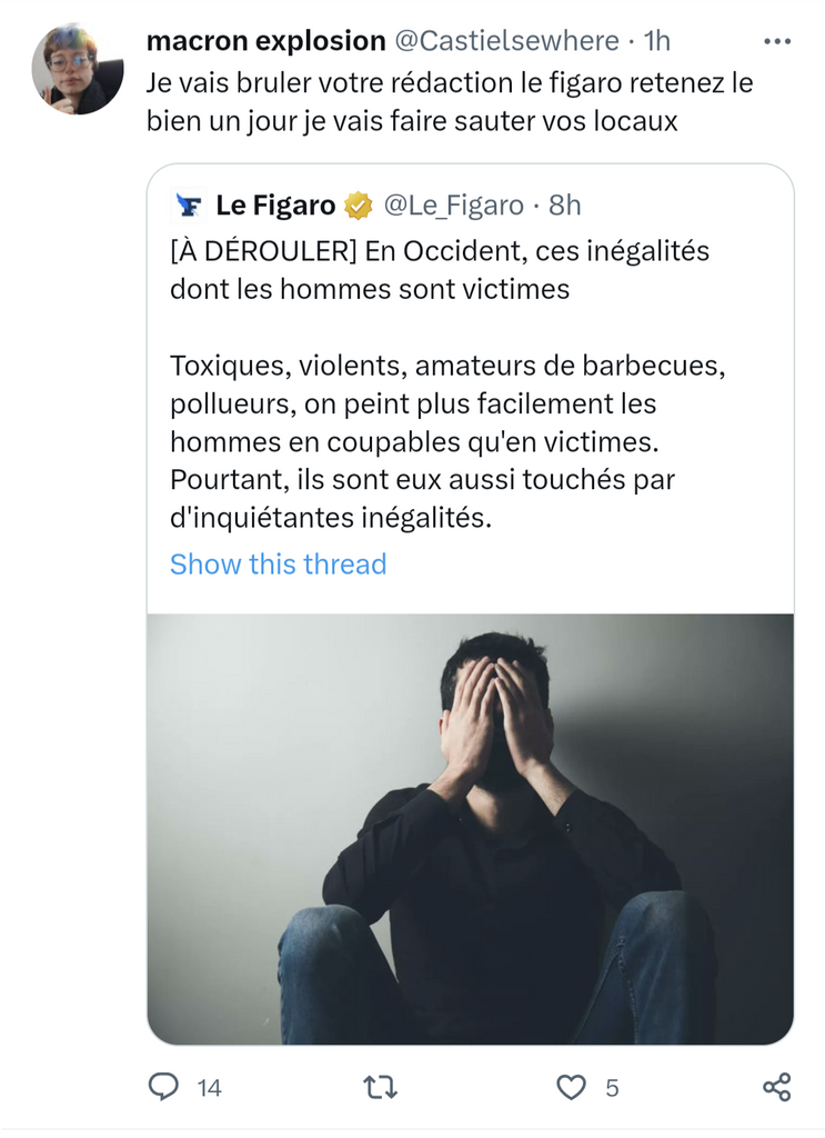 - Le figaro qui fait un article copié collé d'un post 4chan d'il y a 10 ans écrit par un incel de 16 ans.