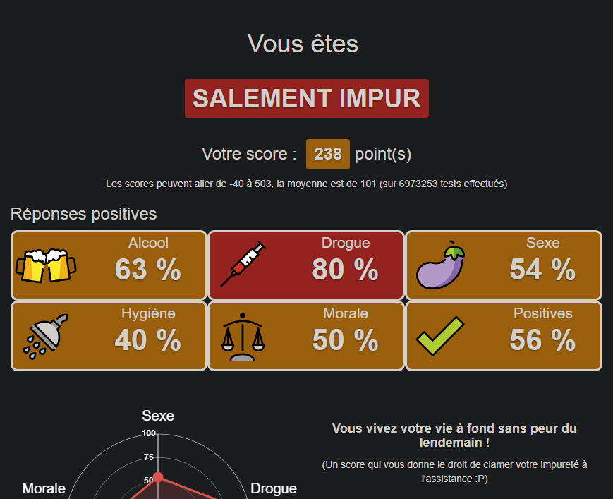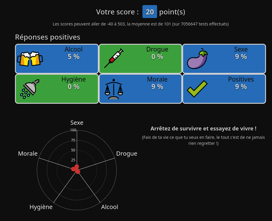 En vrai j'pige pas trop les points, genre j'ai 67% de réponses positives là où t'en a 56%.