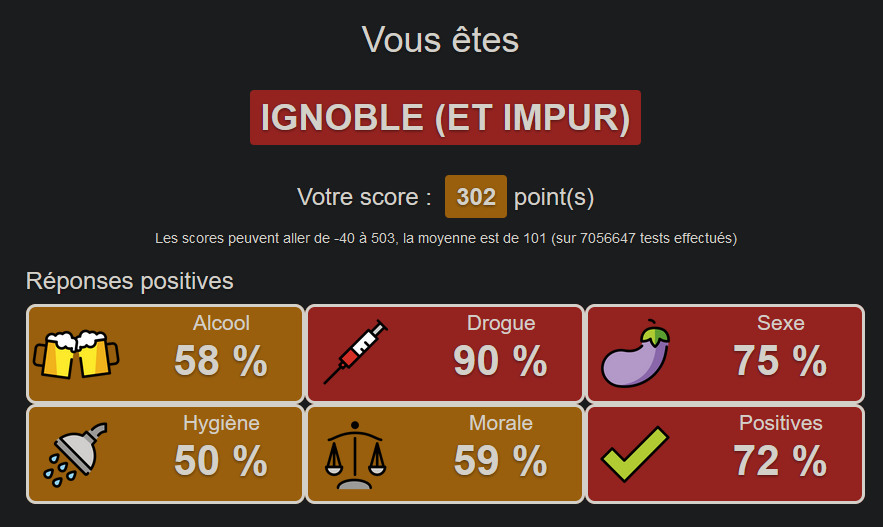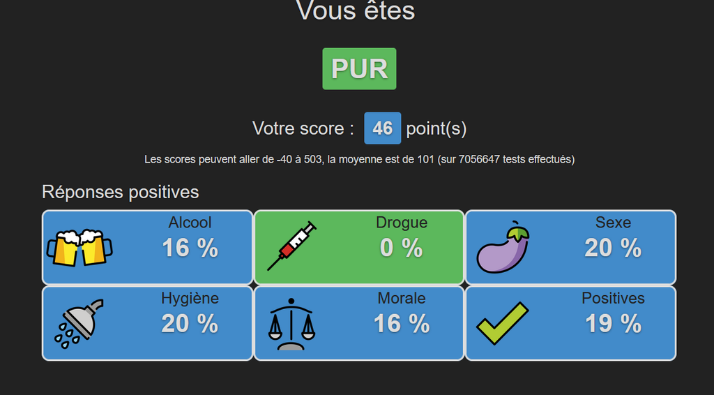 il y'a une question ou j'ai un peu triché (j'ai jamais vraiment travaillé dans une association caricative bien que je fasse des dons a deux association tout les mois) mais sinon je jure avoir répondu honnetement aux autres