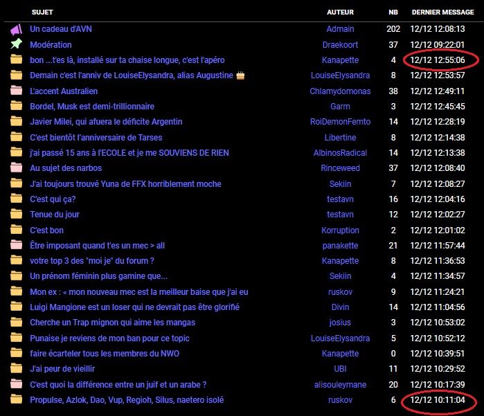 Y'a une heure entre le premier et le dernier topic. Jamais y'a 1500 posts par jour.