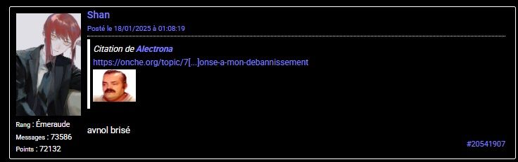 Il m'a dit qu'il allait réfléchir à faire une trêve avec AVN, je pensais qu'il s'était rangé grâce à moi sauf que rebelote quelques semaines plus tard il recommence ses singeries alors j'ai balancé le vocaroo à l'admin qu'il a mis dans le dossier de plainte