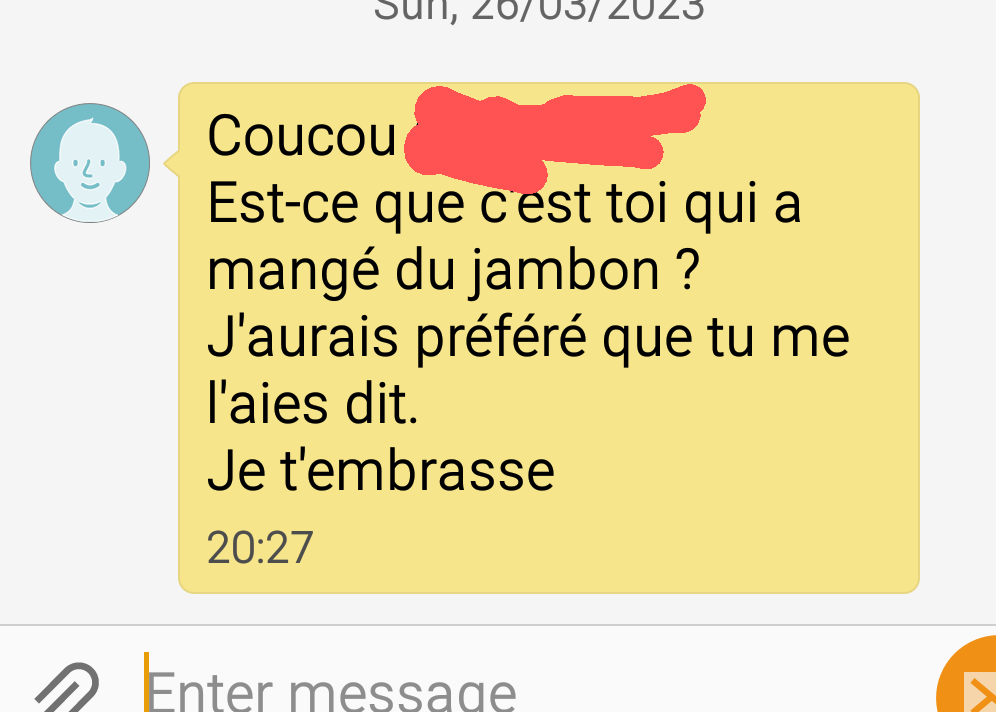 je suis aller passer 1 we chez ma grand mère et j'ai piqué une tranche de jambon dans le frigo pendant la nuit ayaa