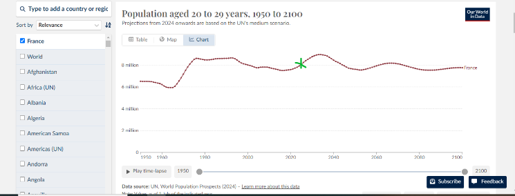 Entre 2025 et 2040, le nombre de jeunes femmes va subir un pic démographique en France. Me demandez pas pourquoi, ça baisait sec dans les années 2000.