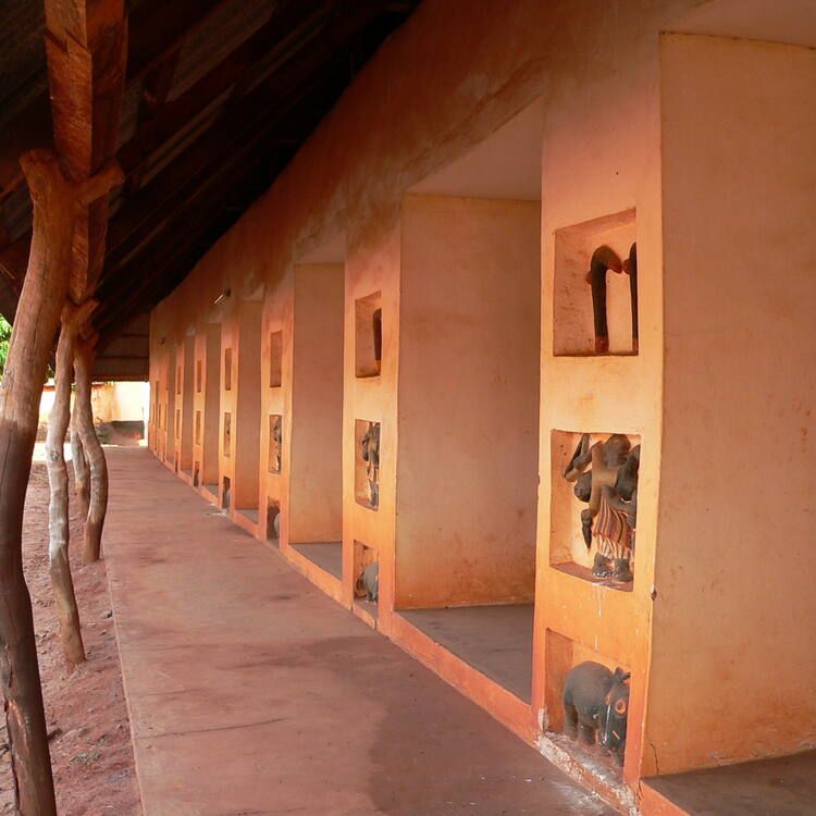 Le roi à foutu le feu a la hutte qui lui servait de palais royal quand il a perdu la guerre contre la France, et l'armée FR a sauvé ses ridicules statuettes en bois qui ont été affichés au musée du quaie branly