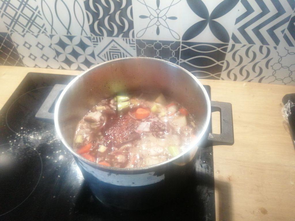 Bon je viens d'ouvrir alors que la cuisson doit se terminer pour 19h, tout le vin est encore là et la viande est déjà ultra fondante