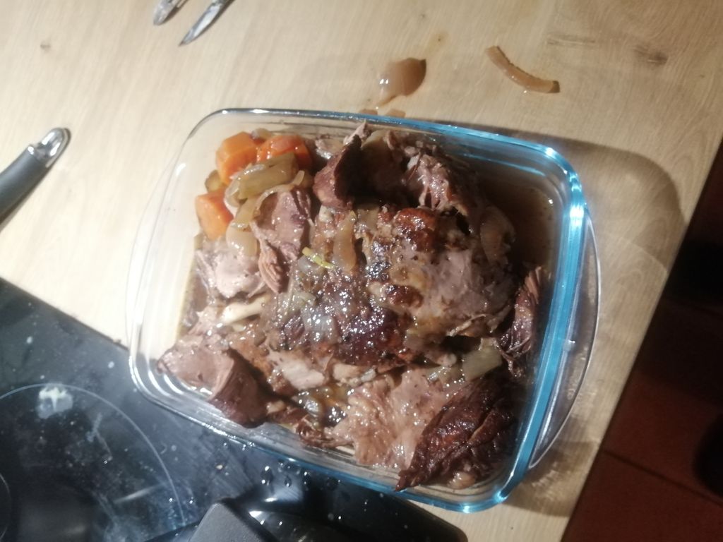 Bon maintenant tu refermes ton faitout et tu encules ca dans ton four prechauffé à 120 degrés pendant 10h. Oui 10h! La cuisson douce et lente c'est le secret du confisage de la viande. Pendant ce temps tu peux reprendre le cours de tes activités normales