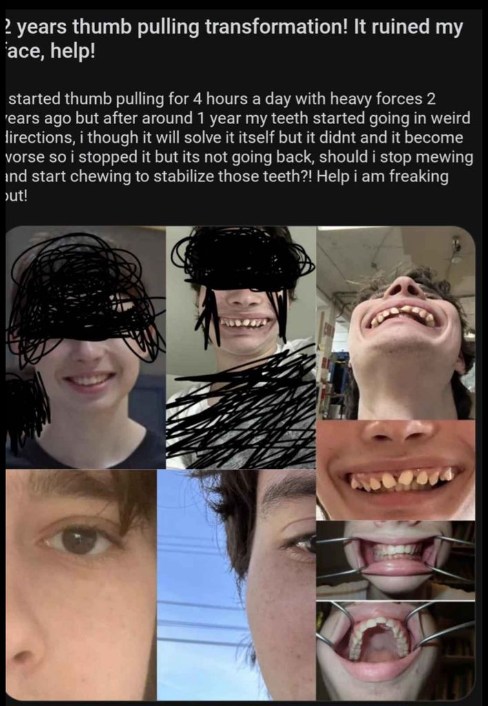 VOUS croyez qu'en venant poser COMME UNE FLEUR votre petit LANGUE sur votre petites DENTS de puceau, TOUS LES OS de votre mâchoire vont MIRACULEUSEMENT s'avancer en même pas QUELQUES MOIS alors que vous avez PLUS DE 18 ANS et que votre croissance est FINIE ???????????