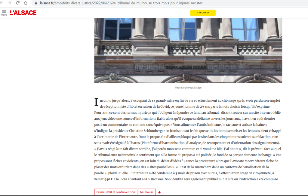 HS : Mais afficher comme ca, ca risque de nuire a sa vie plus tard ... Vous imaginez s'il se radicalisent apres a cause de ca, le juge qui fabrique des dangers publiques alors qu'il faisait juste des injures ...