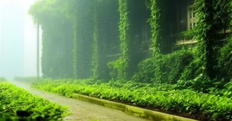 Level 990. It has a classification of variable difficulty. There are mysterious properties, changes in the environment that could be dangerous. The level is split between 2 parts : the above the ground city area and the underground sewer part. The surface level si calm witha light breeze blowing. The mist covers most of the surface. It feels like a humid jungle except there is a city build there. Above the mist, a light blue sky during the day time and a dark purple sky at night time. The level has a lot of non euclidean properties that mess up traversing and mapping it. These properties are more common when you are in a tight hallway or alleyway or a sewer. Wanderers can't meet or see each other here. If 2 people are on the same level they will never know it. The buildings are similar to real life but with a few differences. Some of the signs are written in unknown letters or some of them are blank. Sometimes the architecture are too advanced for humans. Most of the buildingss are covered with vines and leaves. 2 weather type can happen : the calm, sunny vibe and the torrential rain, literally a monsson rain. The 2 weather can swap instantly. The objects inside the buildings can randomly appear and disappear. You will spawn on the surface area. Except for the non euclidean factors it's the easiest part to explore. The buildings have overgrown plants growing outside and inside. Even deeper in the buildings there are rooms full of decaying plants and mold. Only 2 entities have been witnessed so far. First is a strange shadowy figure lurking in overgrown areas of the city and in the alleyways; The other is a strange water creature seen in the flooding rains.
