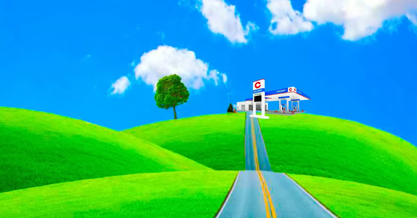 Level Pi. It's classified as class 2e. It has non entity hazards. It's a sublevel thought to exit between level 3 and 4. It looks like a bright old expanse of hills. The grass, sky, clouds is set to the highest saturation possible which means that all of the colors are as bold as they can physically be. The hills here are so round in some spots that it's impossible to climb up them so they're kind of spheres sticking out of the ground. Some of the hills are coming out of the ground in such unnatural ways or they are slanted in strange angles. It adds to how trippy the level is. Hills and slopes almost act as ocean waves. There are also freshly asphalt road, curving through the slopes. Some of the roads seem to randomly end or curve and then just stops. Besides those hills and roads, the most common thing are multicolored gas stations, placed on strange locations. It doesn't seem possible to have buildings where these are. They are put on a direct hillsides on top of hills, on sides of the hills, in the valleys, anywhere. The only constant if that they will always be near a road to some degrees The brand of the gas stations don't exist in real life. No human life were detected. Sometimes a random fog will appear and start rolling over the hills. This fod kind of hovers and slithers his way around near the hills. When it gets near you, you can see the saturation of the level gets less color vibrancy. Area near fog gets pixelly when it passes by. Almost like the level has a low resolution when the fog is there or something like that. This misty fog is the biggest environmental danger of the level. It's toxic to breathe in. Get into the gas station to avoid this. No entities on this level. TO enter this level you can find a door that opens on level 51. It's random so you have to open ton of different doors to find it. There isn't a an official exit but yet most people get sent away. It looks like the level choose who leaves and who stays...