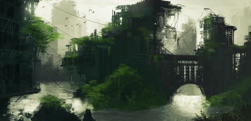 The sewer part is obviously more dangerous because it's prone to random sudden flooding. There are even more non euclidean properties and entities here also. There is no natural light in these sewers which is a hazard. The biggest hazard is those flash floods. On top of the level there is vegetation that is overgrown in the sewers even if there is no light there. These sewers are accessed from alleyways or under bridges on the surface area. As for the entity on the surface level it's all black humanoid shapes silently walking in the night.They haven't attacked so far, they are just here. As for the water creatures appearing during ranstorms and floodings they are just part of this water it seems. There is also a specific entity living in the sewers called the sewer leech which are snake like water leeches that can grow up to 8 feet long. They attach themselves to a wanderer's clothes and they latch out with their teeth and if you don't wash the wound quickly this could give you an infection. These leeches can crawl up to the surface when it rains heavily and the sewers get flooded. The level was discovered on March 15th 2022 from an anonymous wanderer who called it a silent paradise. To enter this level you have to travel far into an abandoned old building on level 11. To exit you can stay in a sewer for a long time or you can go in a weird building that's not overgrown, to be sent back to level 11.