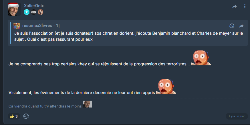 cherche pas y'a pas de logique avec essoudores, dans 6 mois on l'entends plus quand ces mercenaires d'Israël seront tous éliminé.