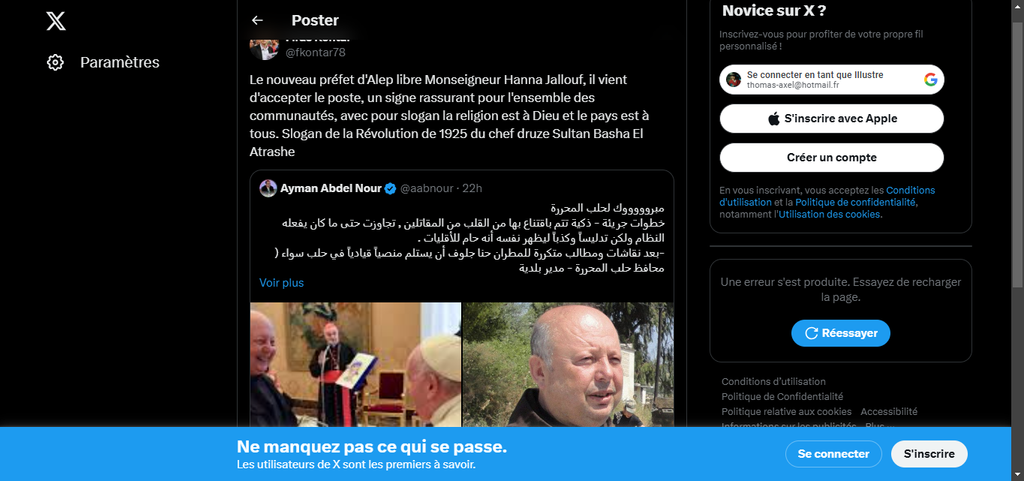 Super timing les cassos, 10 heures plus tard, un prêtre chrétien est désigné prefet d'Alep, el famoso terroristes islamiques radicaux