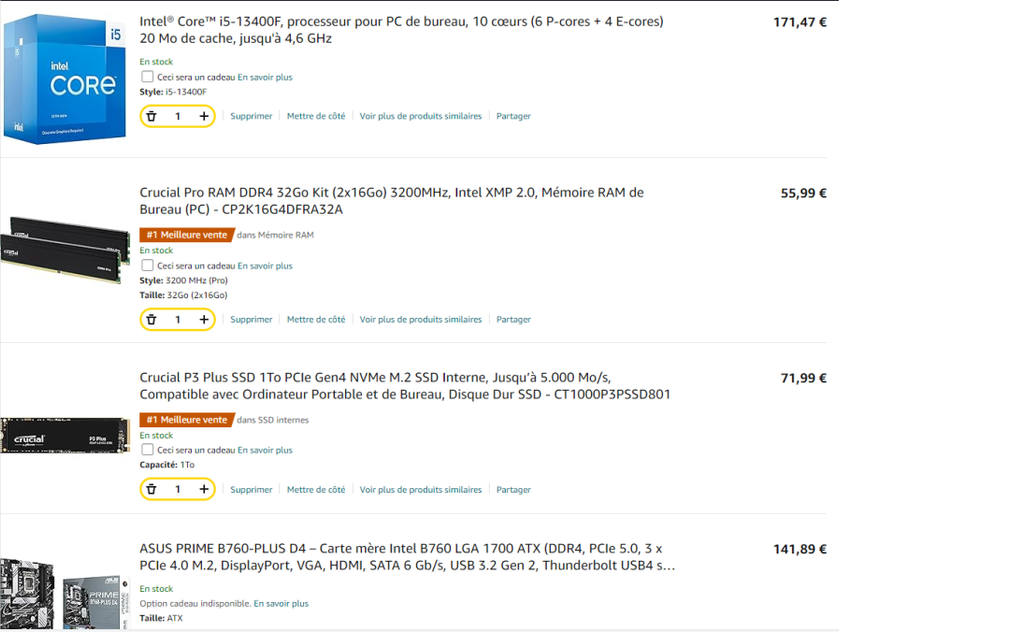 Mais honnêtement tu devrais mettre ~20€ de plus pour un 13600k, ça te feras une base bien plus durable
