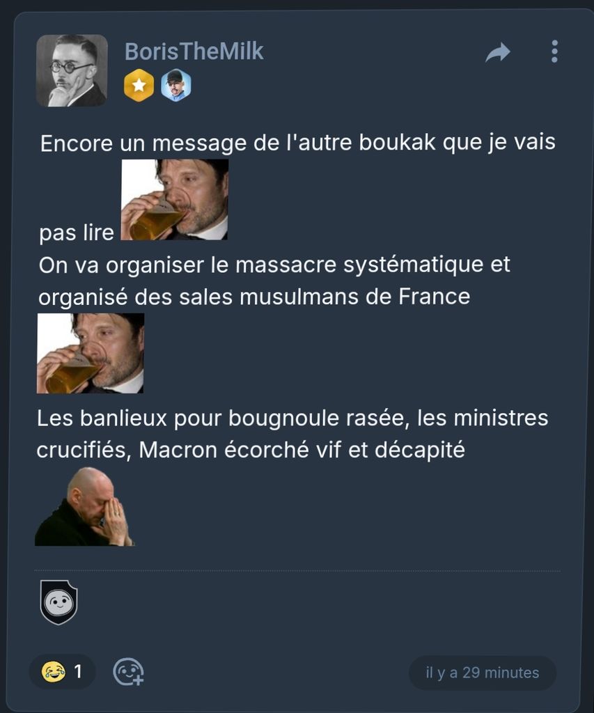 Mdr le pire c'est que j'ai rien dit sur le Grand remplacement le mec est tellement fou qu'il supporte aucune réponse et balance des menaces de mort directement