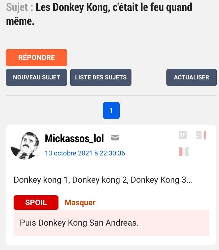 Non en vrai c'est un peu triste on nous propose enfin un forum qui parle d'émulation (et en vrai on imagine pas le nombre de gdcien qui souhaiterais en parler sans se faire ddb)
