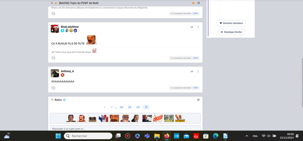 Tous ceux qui postent à 00:00:00 (ou 00:00:01 on est gentil) auront le badge Noël