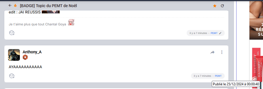 Tous ceux qui postent à 00:00:00 (ou 00:00:01 on est gentil) auront le badge Noël