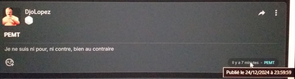 Curseur de la souris sur l'heure du post