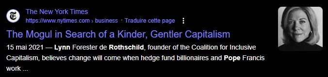 Lynn Forester de Rothschild, founder of the Coalition for Inclusive Capitalism, believes change will come when hedge fund billionaires and Pope Francis