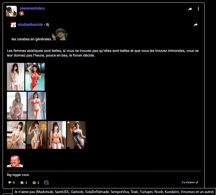 Ceux qui ont mis le pouce en bas sont les homosexuels attitrés du forum.