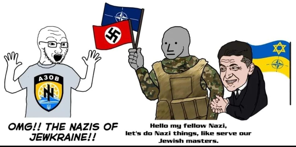 TOUS les ukrainiens et les pro-ukraine qui se disent nazis sont littéralement attardé, ils servent exactement l'opposé des nazis ces abrutis
