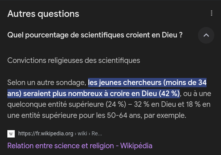 Y'a même des scientifiques qui pensent que la religion et la science n'est pas incompatible