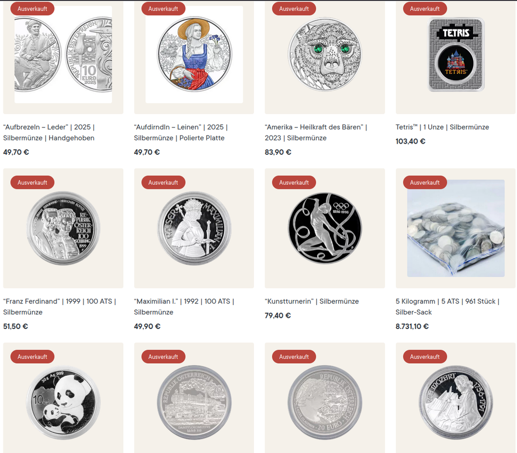 Littéralement tout l'argent est en rupture de stock chez le plus gros vendeur autrichien