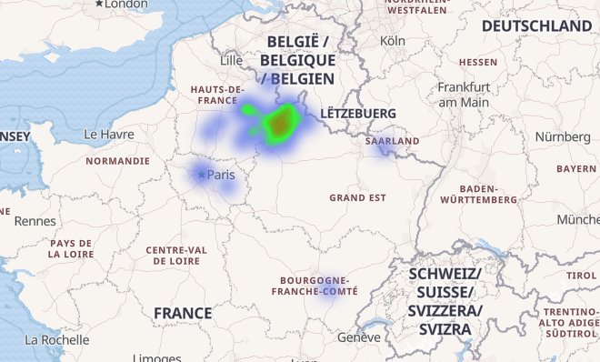 Et bah en effet il y a un point dans le village d'où ils sont originaires et un autre à Nancy et un autre à Strasbourg. Et c'est les seules personnes que je connaisse avec ce nom là