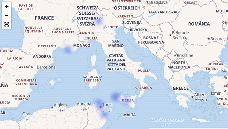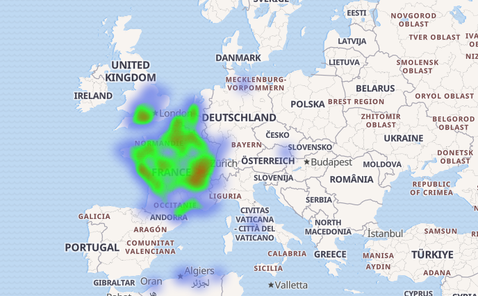 ca se concentre sur le sud de la France, l'Espagne et l'Algérie