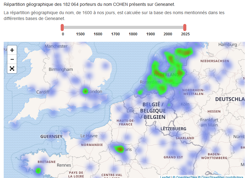 localisation des personnes portant votre Nom de Famille depuis l'an 1600.