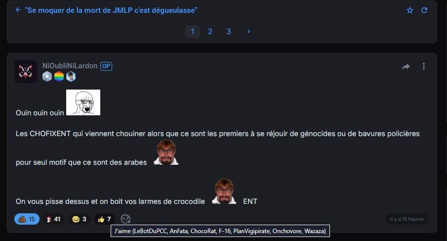 C'est plus simple de mettre un smiley cuck , de demander mon ban def et de m'insulter que d'assumer leur contradictions. En plus d'avoir 0 balls IRL, ils n'ont aucun courage intellectuelle.