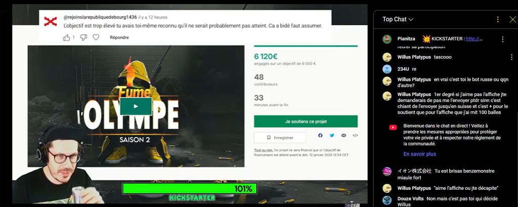Un type qui dit qu'il innove et deviendra réalisateur, là, il menace de quitter internet si la barre des dons n'est pas atteinte.